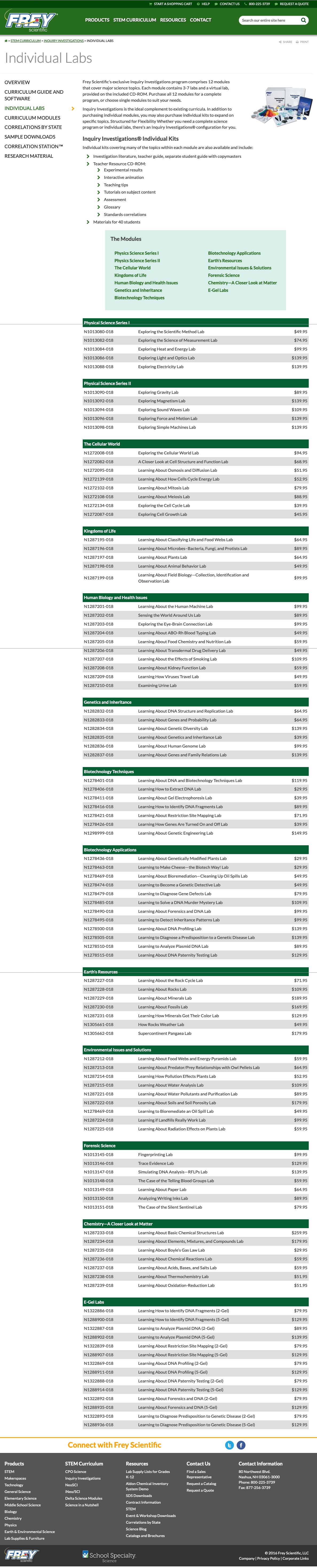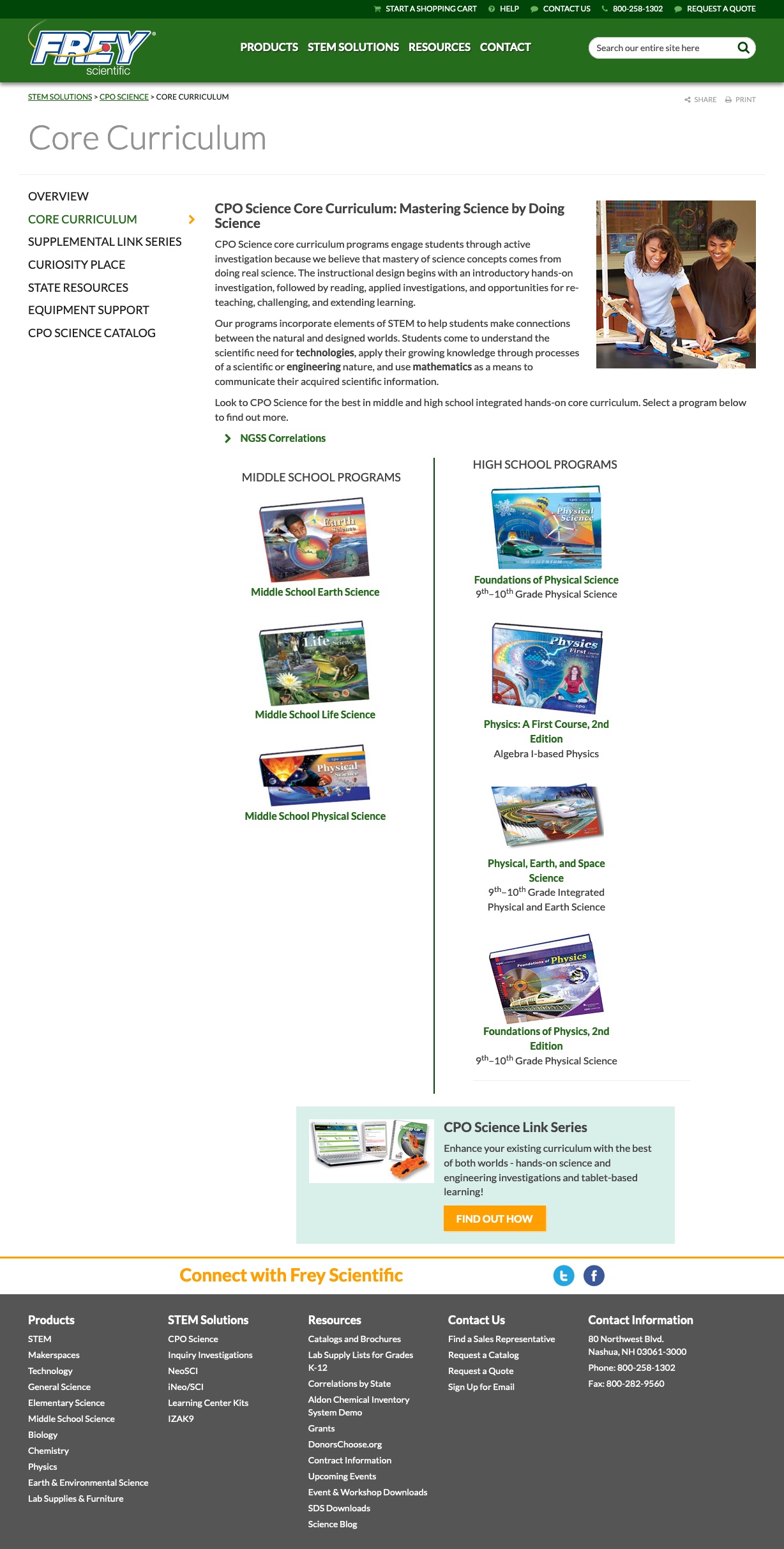 While the majority of pages on the site are similar to pages on the Delta Education site, there were some that were unique to Frey. A few of those are highlighted below.